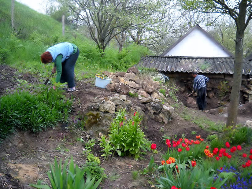 Another knock! Daveeeed! Alina's way of announcing herself. "Entre Vous!" The door half opened and Alina said, "David there is a Kamaz full of gravel out there (Pointing to where the cows get their mid-day milking). Probably it is yours!" I went out on the road to find the driver, Lenur's short statured grandpa hiking up the road from his gravel truck. After the obligitory handshake I expressed my surprise at his early visit. He said he tried to phone Lenur but he was not answering. I knew that already because Lenur said he would be here Monday morning early to help grandpa. It was up to me to get the gravel close to the work then.